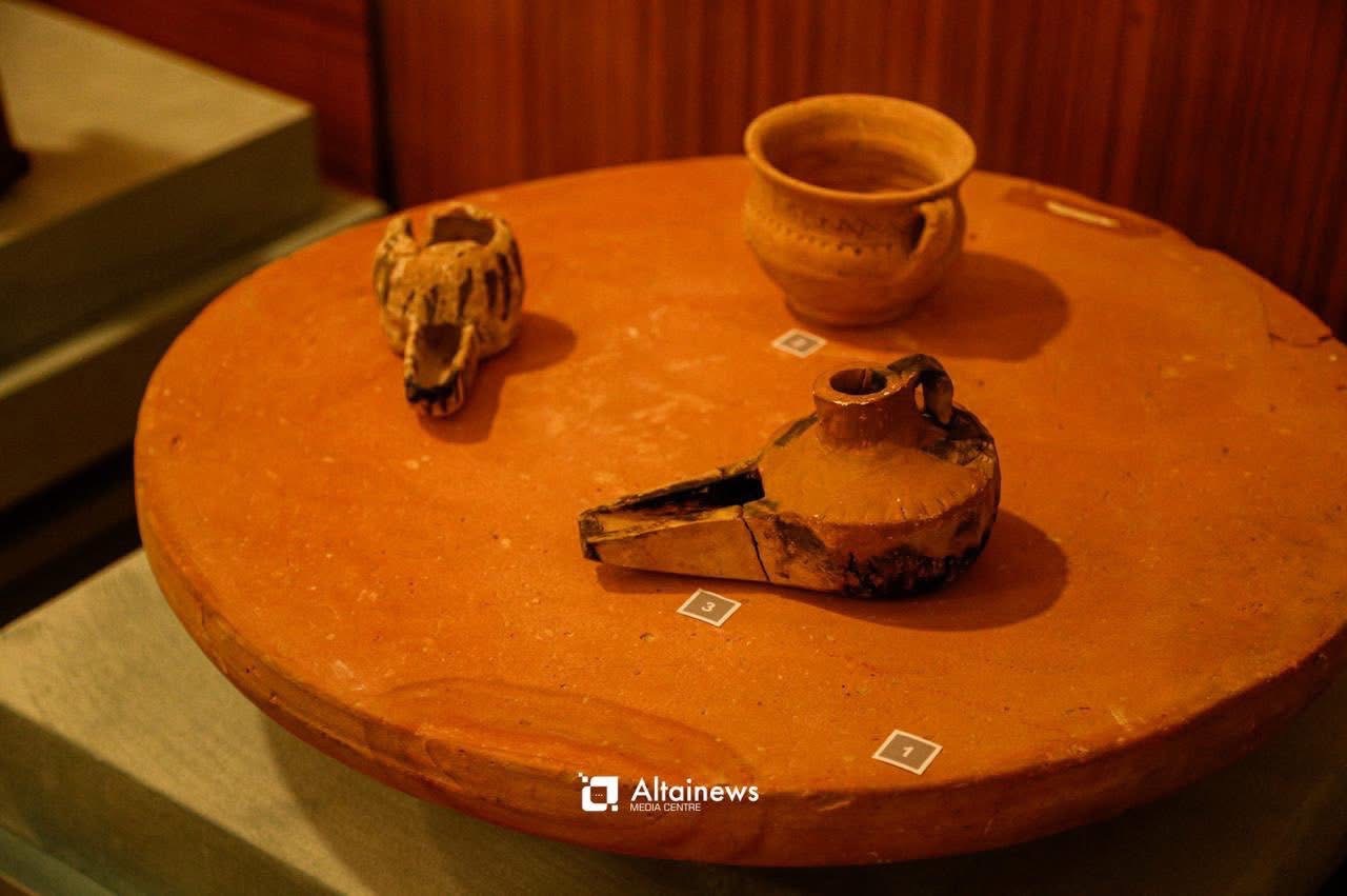 Археологиялық экспедициялар кезінде табылған алтындар коллекциясы да осы жерден орын алған. Ежелгі өркениеттің бесігі саналатын Шірік Рабат және Бәбіш мола қалашықтарынан табылған алтын жапсырмалар сол дәуірдің көзіндей. Сондай-ақ, көрмеге орта ғасырларда сауда-саттық пен мәдениеті өркендеген Сығанақ қалашығынан табылған алтын сырғалар, тұмар, түймелер және маржан моншақтардың түпнұсқа коллекциясы қойылған. Шығыс жұртшылығы Жанкент, Асанас, Қышқала, Сығанақтан табылған терракоталар, глазурлі қаптамалар, қыш ыдыстар және Бидайықасар қалашығынан табылған қоссаз домбыра көшірмесін де қызыға тамашалады.