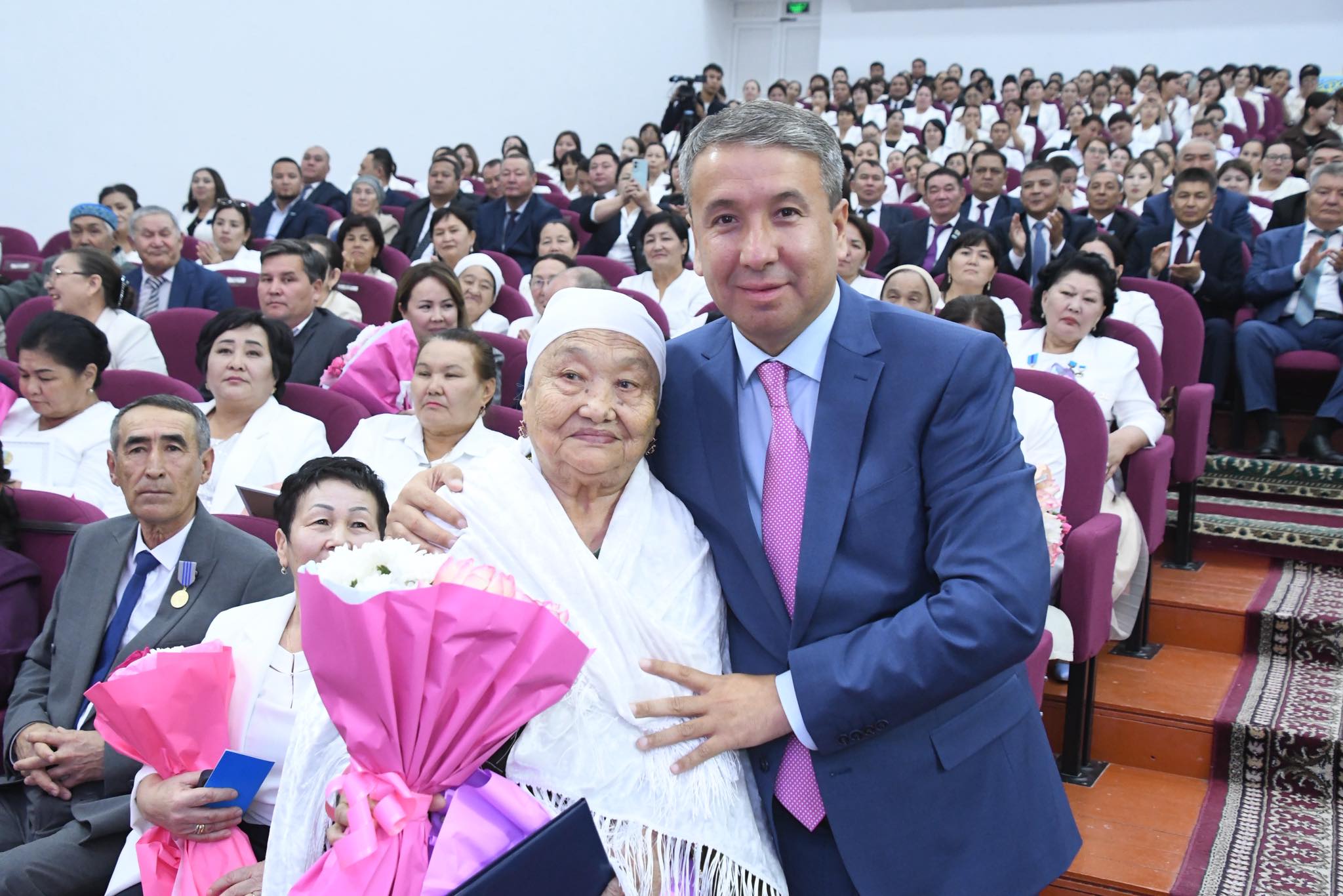 Роза Бағланова атындағы аудандық мәдениет үйінде өткен «Ғұмырын білімге, жүрегін ұрпаққа арнаған…» атты мерекелік шараға аудан әкімі Алмасбек Есмаханов қатысып, ардақты жандарды кәсіби мерекелерімен құттықтады.